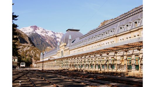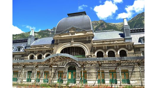 Créée en 1918, à 1 200 m d’altitude, au niveau du col du Somport, à la frontière espagnole, la gare internationale de Canfranc est la 2ème plus grande gare d’Europe (200 000 m² soit la taille de la gare St Lazare à Paris) dans un village de 600 habitants.