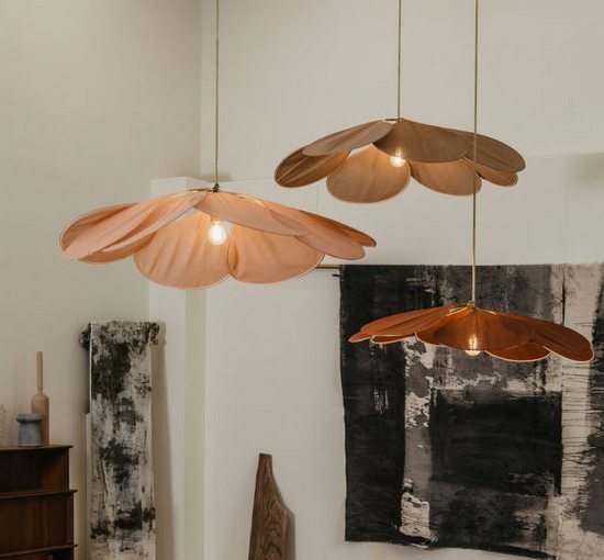 Coqueluche de tous les spécialistes de décoration, elle a bâti sa renommée grâce à un objet devenu culte, une suspension nommée « Pale » faite justement… de pales, brodées autour d’une structure en rotin, laiton et coton, sorte de fleur géante suspendue aux couleurs et matières multiples (au choix du client).